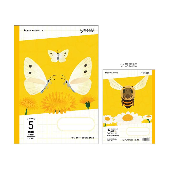ジャポニカ学習帳 方眼ノート B5 5mmマス イラスト チョウ ハチ柄 黄 M便 1 1 シブヤ文具 通販 Paypayモール